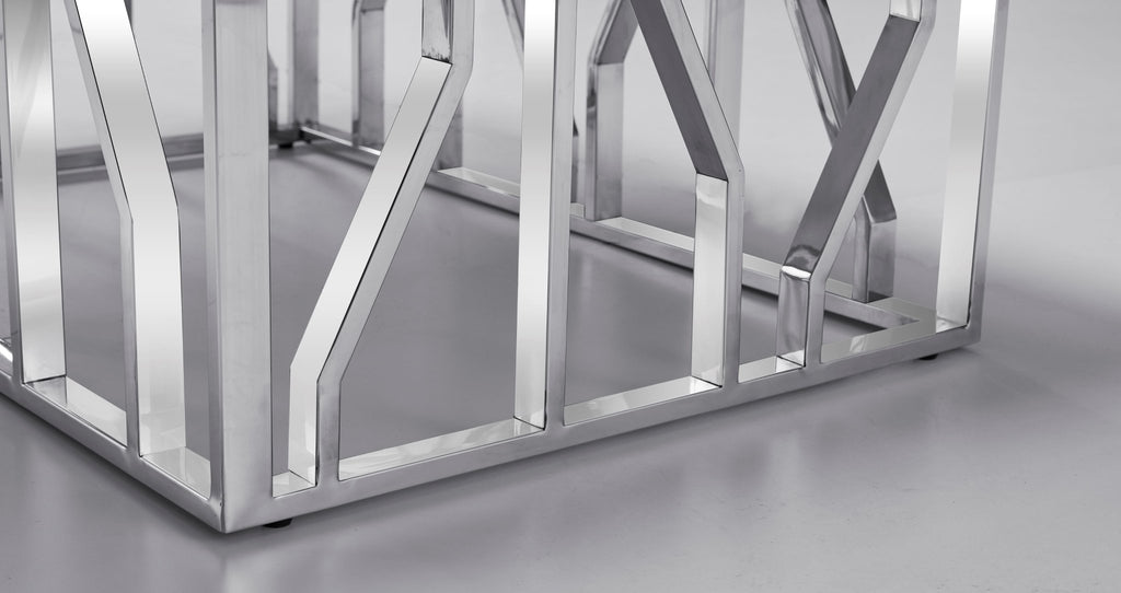 Kaia Stainless Steel Base Marble Top Dining Table Silver